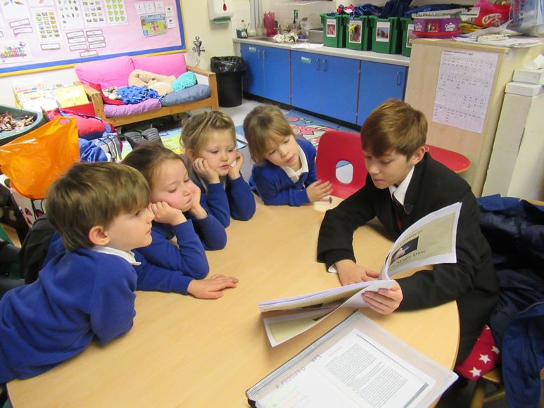 The students read their stories to small groups of children in both a Year 1 and Year 2 class and both parties really enjoyed the experience. Year 10 student Alex Rogers said: “I really enjoyed today, it was fun to do something we wouldn’t normally have the opportunity to do.” The Compton pupils were equally as enthusiastic. Year 2 pupil Thomas said: “I loved it, it was the best story I have ever heard.” His Year 1 friend Nell added: “I enjoyed it. The story was about Father Christmas and the presents that fell out of the back of the sleigh.”